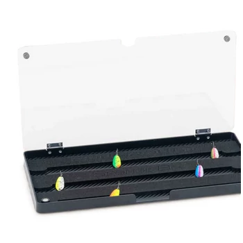 Az átlátszó akril fedél két erős mágnessel záródik, így a csalik szállítás közben is biztonságban maradnak. A masszív ABS és akril anyagból készült doboz rendkívül strapabíró, ezért ideális választás intenzív horgászathoz is.